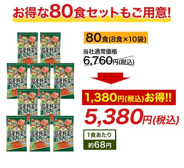 みそ汁 レトルト 日本食 快適生活 国産野菜のお味噌汁 合計80食セット