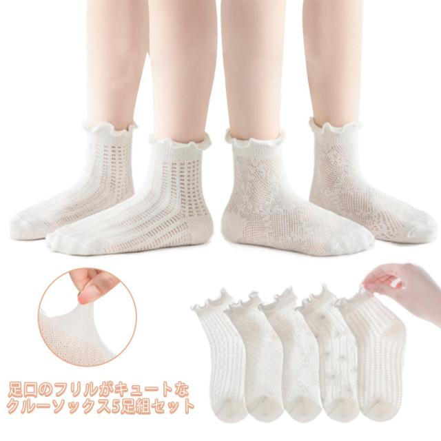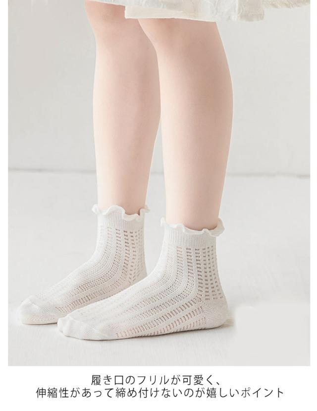 送料無料5足組セット 靴下 クルーソックス キッズ ベビーソックス メッシュ 夏用 子供用 女の子 くつ下 女児 メロウフリル ショートソックス キッズ 無地 シンプル コットン 綿 かわいい おしゃれ フォーマル お出かけ 普段使い デイリー 幼稚園 小学生 卒園式 入学式