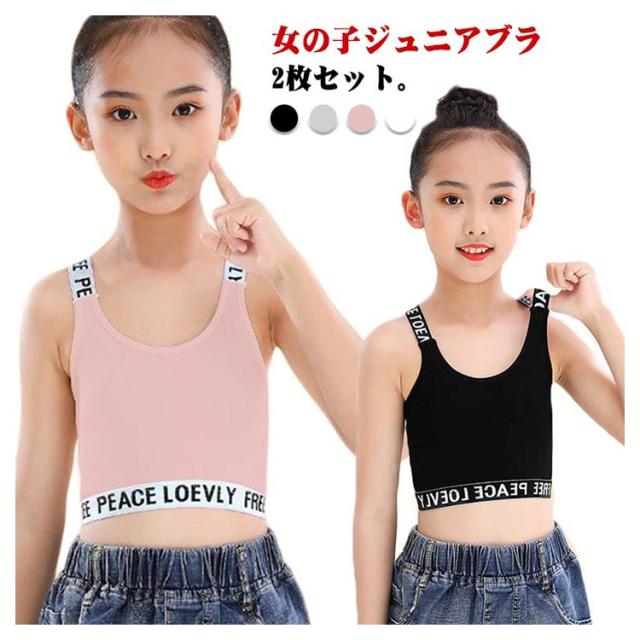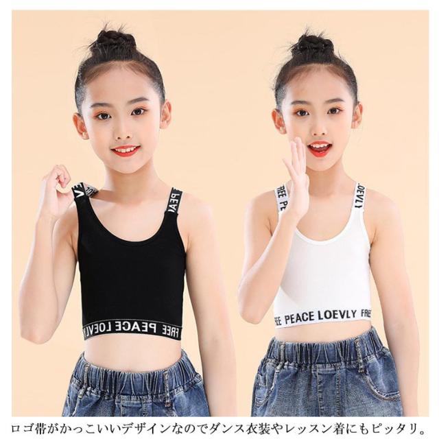 キッズ タンクトップ 2枚セット インナー へそ出し ブラック ホワイト グレー ダンス スポーツブラ ブラトップ 衣装 ショート丈 ヒップホップ キッズダンス衣装 子供