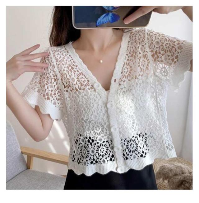 サマーカーディガン レディース 透かし ボレロ 羽織り カーディガン 半袖カーディガン サマーニット ニットカーディガン 透け感 ライトアウター サマーニット 冷気対策 春夏 薄手 結婚式