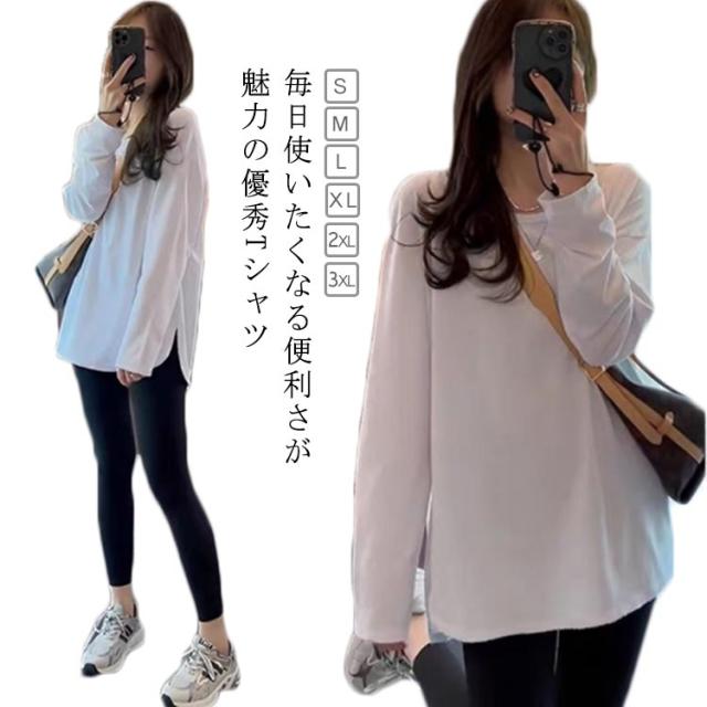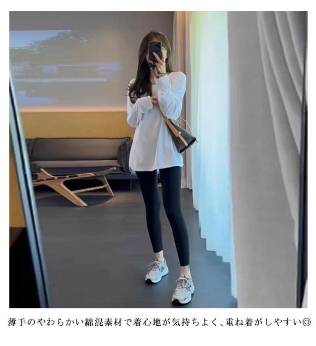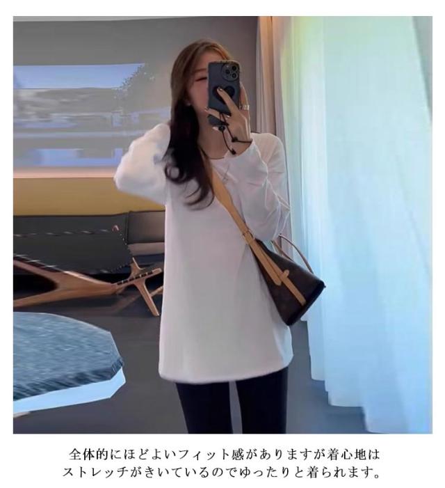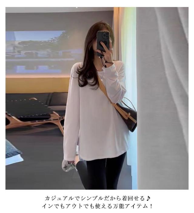 Tシャツ レディース 長袖 tシャツ 薄手 ロングティシャツ 重ね着風 カットソー トップス ロンT インナー 無地 長袖tシャツ 暖かい あったか ルームウエア パジャマ スポーツウエア 透けない 長そで 厚手 クルーネック シンプル 重ね着 レイヤード 送料無料