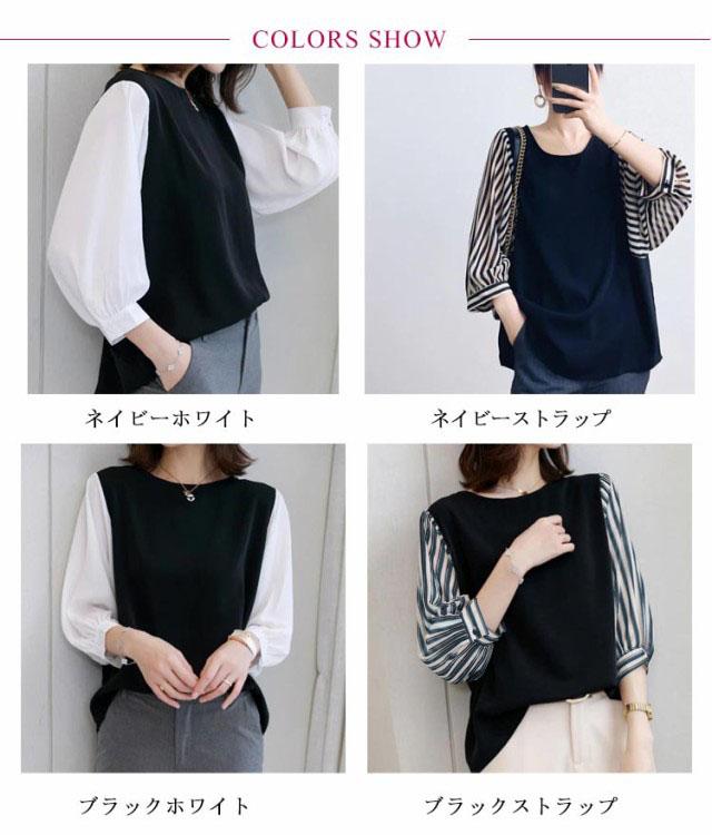 ぽわん袖ボリュームスリーブトップス 七分袖 レディース 韓国ファッション 春服 春夏 韓国 レイヤード tシャツ シアートップス シアー Uネック 白 黒 無地 クルーネック 体型カバー ブラウス バルーン袖 パフ袖 フレアブラウス