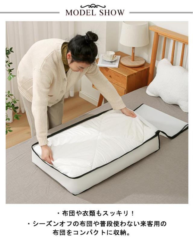 | ・布団や衣類もスッキリ! ・ベッド下のすき間の有効活用ができるベッド下衣類収納ケース ・中身が見える半透明タイプ ・シーズンオフの布団や普段使わない来客用の布団をコンパクトに収納。 ・見た目のごちゃごちゃ感が一掃できて、お部屋の中やクローゼットもすっきり、 スペースの有効利用が可能。 | |