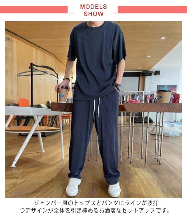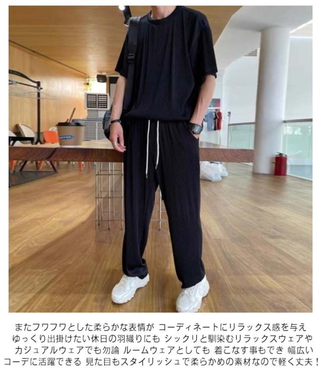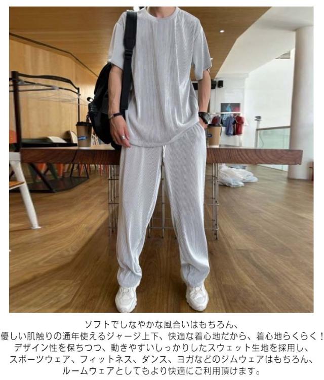 カジュアル セットアップ メンズ アイスシルク ロング上下セット Tシャツ ロングパンツ トップス 2点セット ルームウェア スウェット ジャージ 涼しい 半袖 ゆったり 大きサイズ 夏 ストレッチ 通気性 アイスシルク カジュアル 柔らかい 接触冷感 送料無料