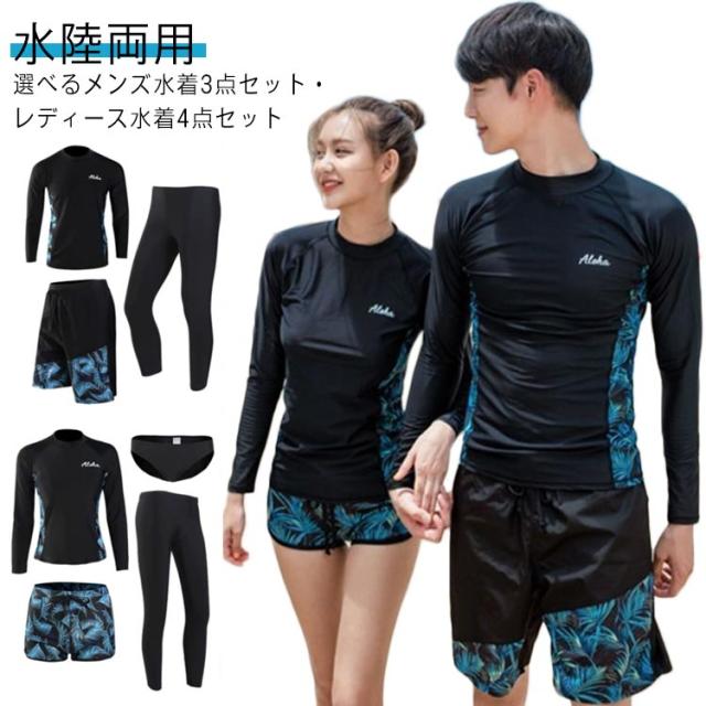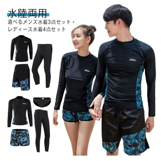 水着 上下セット レディース メンズ 長袖 ラッシュガード セットアップ 3点セット 4点セット 伸縮性 日焼け対策 UVカット ペアルック セパレート 水着 体型カバー トップス レギンス ショートパンツ おしゃれ 水陸両用 ビーチ プール フィットネス アウトドア 送料無料