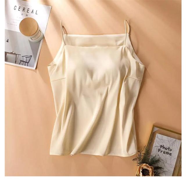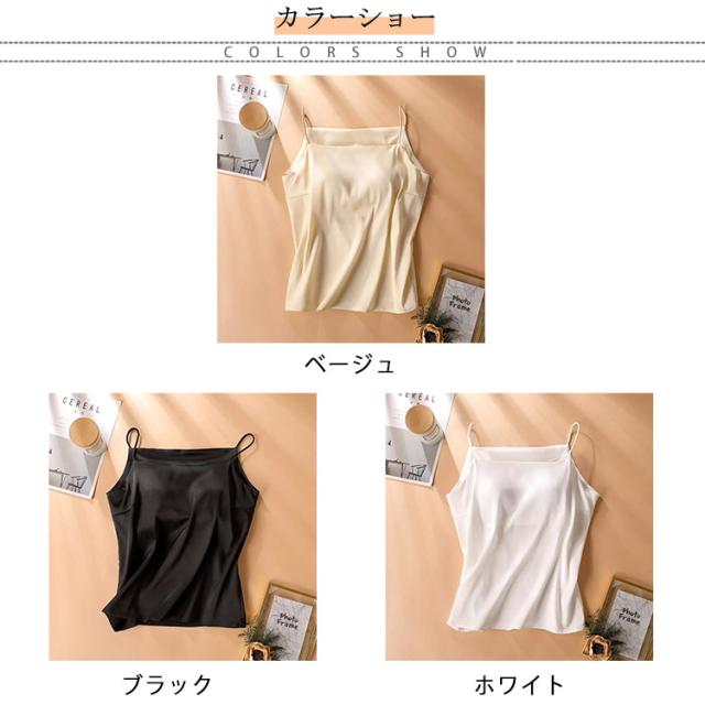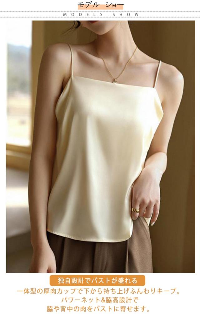 カップ付き キャミソール カップ付きキャミ ブラトップ スクエアネック サテンキャミソール ブラ レディース ブラ不要 ナローストラップ 立体カップ シルクタッチ 楽ちん サテンスリップ 重ね着 ノンワイヤー ノースリーブ 送料無料 光沢 オフィス 上品