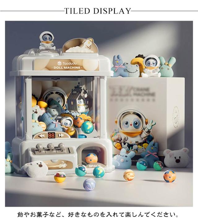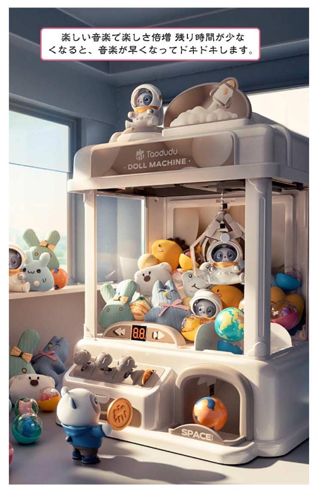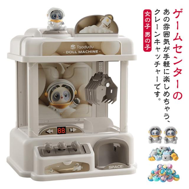 | ゲームセンターのあの雰囲気が手軽に楽しめちゃう、クレーンキャッチャーです。 飴やお菓子など、好きなものを入れて楽しんでください。 楽しい音楽で楽しさ倍増 残り時間が少なくなると、音楽が早くなってドキドキします。 ご家庭で、簡単に楽しめるゲーム機です。 子供から大人までみーんなで、遊んでください。 | |