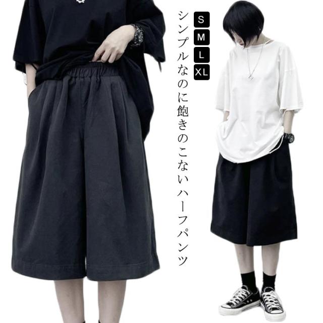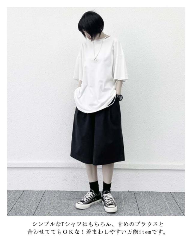 ワイドパンツ ミディアム丈 キュロット フレアーパンツ プルオンパンツ ひざ丈 ハーフパンツ ガウチョパンツ ゆったり スカーチョ 夏服 着?せ ママコーデ ウエストゴム 体型カバー カットソー 部屋着 カジュアル 無地 ポケット付き シンプル レディース 送料無料