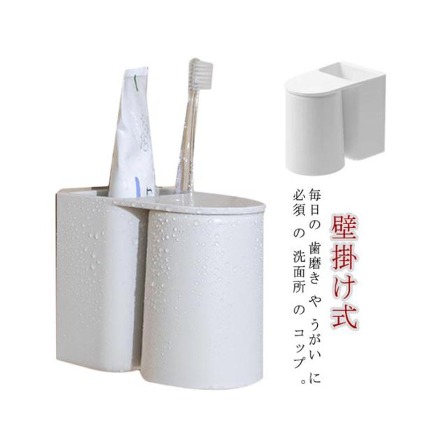 2個セット 歯ブラシホルダー 吊り下げ式 マグネット 浮かせる コップ スタンド ホルダー 壁掛け式 歯ブラシスタンド コップスタンド 歯ブラシたて はぶらしたて 洗面所 収納 壁掛け 電動歯ブラシ 歯磨き粉 カップ スタンド 水垢防止 防塵衛生 おしゃれ 日用品雑貨