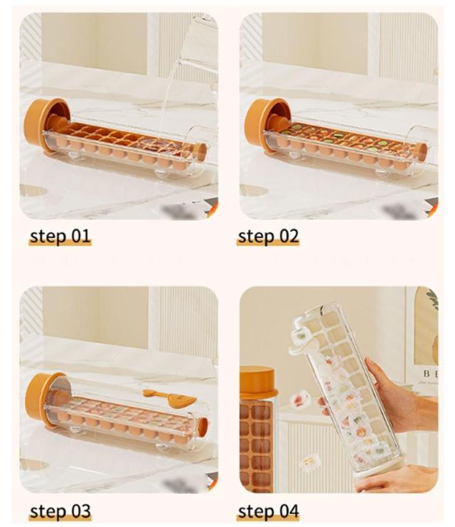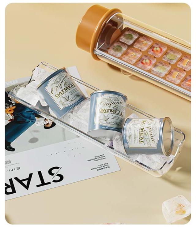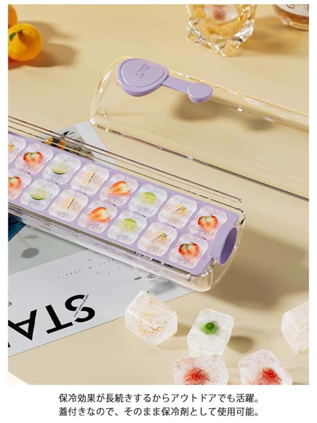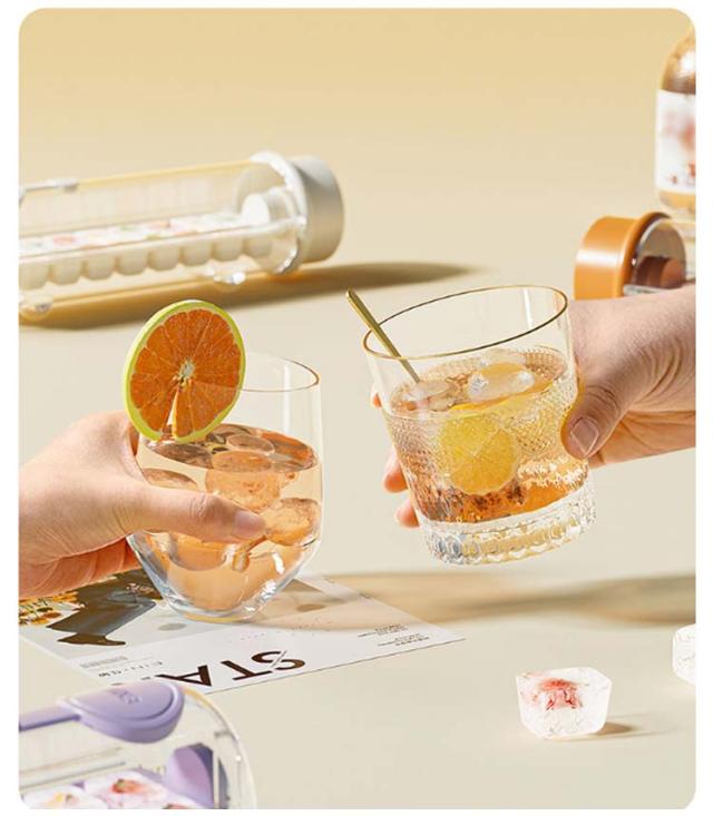 | 冷凍庫用アイスキューブトレイを使用して、一度に18個のブロックを作成します。 アイストレーを回転して、アイスキューブがばらばらと外れる。 全過程が氷に触れることなく、清潔であり、手も濡れてしまう心配がありません。 飲み物をそのまま凍らせて、ドリンクボトルとしても使用可能。ドリンク、デザート、カクテルなどを大量に冷凍できます。 保冷効果が長続きするからアウトドアでも活躍。蓋付きなので、そのまま保冷剤として使用可能。 | |