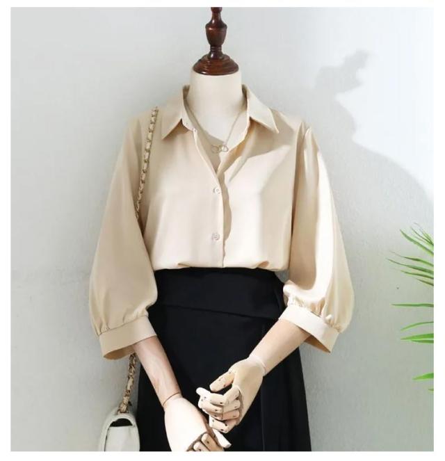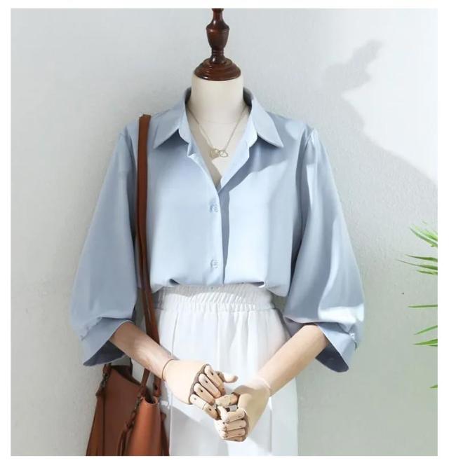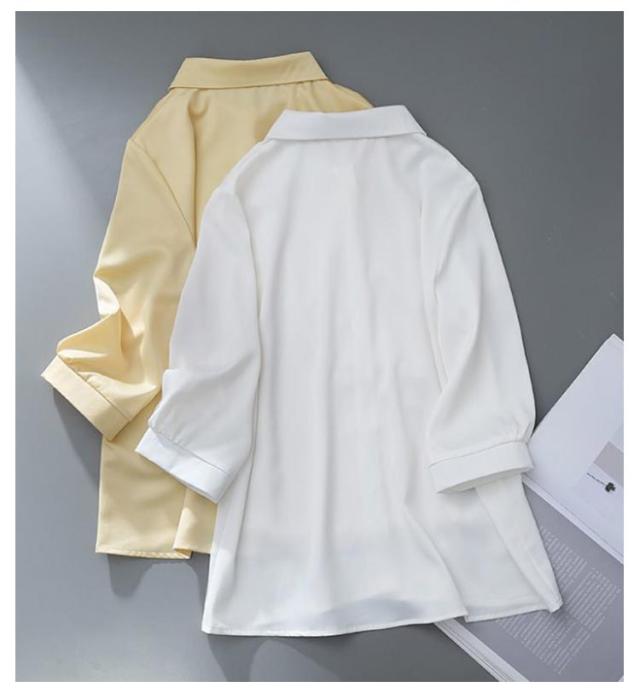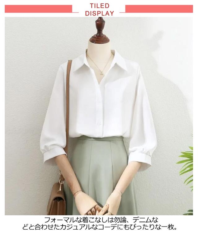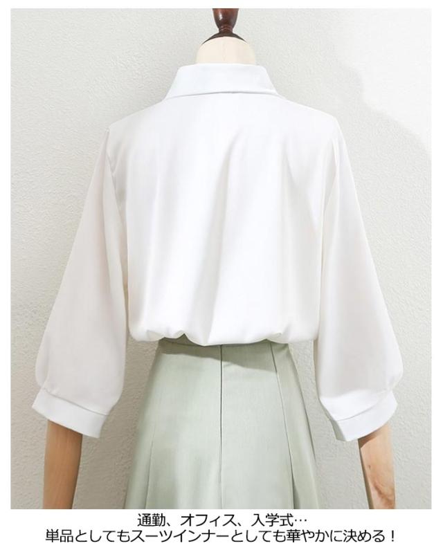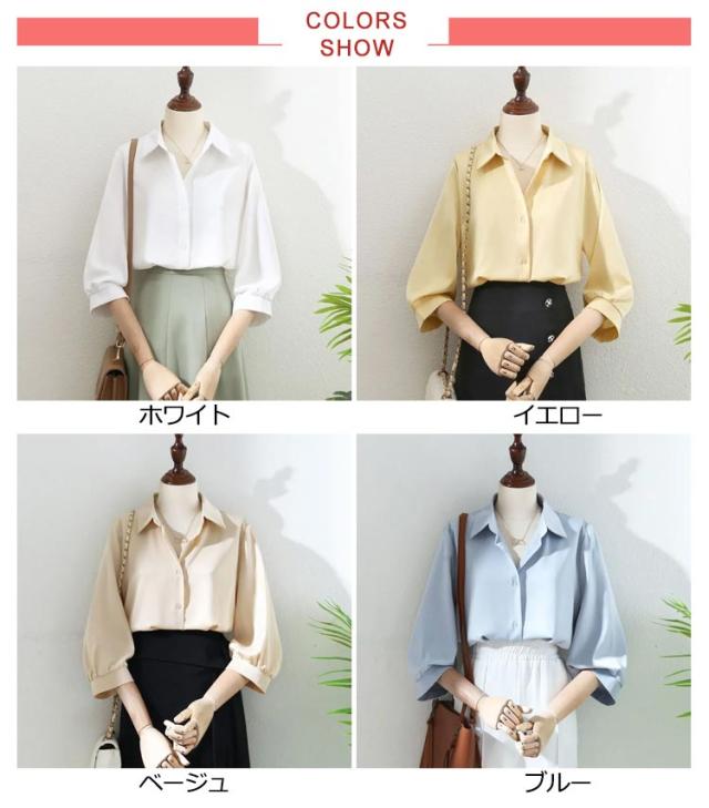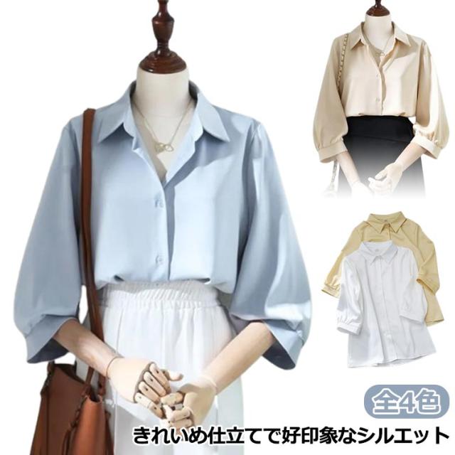 全4色!シャツ レディース ブラウス 7分袖 ワイシャツ 春 夏 薄手 ビジネス オフィス カジュアル 事務服 おしゃれ とろみ 大きいサイズ きれいめ フェミニン フォーマル 仕事 きれいめ 七分袖 白 青 送料無料