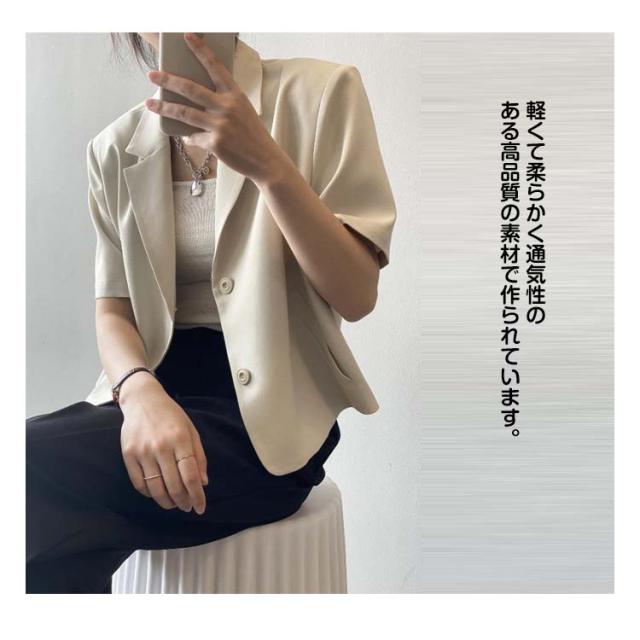 サマージャケット レディース 半袖 ジャケット 薄手 アウター トップス カジュアル スーツ ライトアウター 夏 サマースーツ オフィスカジュアル 洗える テーラードジャケット 無地 着痩せ おしゃれ 羽織り 体型カバー