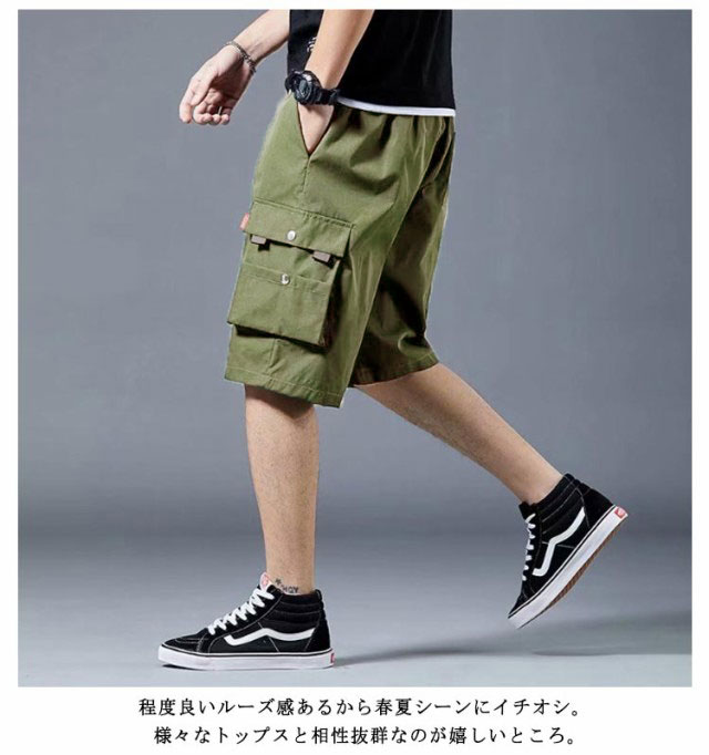 カーゴパンツ ハーフパンツ メンズ ショートパンツ ワイドパンツ かっこいい 無地 五分丈 膝丈 ハーフ丈 半ズボン 夏用 薄手 短パン 多ポケット ボトムス ミリタリーパンツ 通気性 ゆったり 大きいサイズ カジュアル アウトドア ゴルフウェア 送料無料 父の日