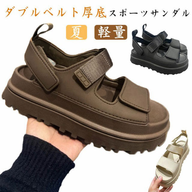 サンダル 厚底 スポーツサンダル レディース スポサン ストラップサンダル ダブルベルト マジックテープ 軽量 夏 海 カジュアル きれいめ プラットフォーム 履きやすい 疲れない おしゃれ 歩きやすい 旅行 アウトドア 痛くない 浴衣