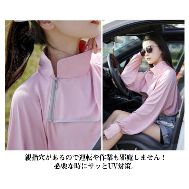 UVカットパーカー ハイネック 長袖 アームカバー 薄手 接触冷感 ハイネック 紫外線カット 運転 ゴルフ スポーツ 自転車 薄手 接触冷感 冷え防止 日焼け防止 冷房対策 アームカバー ショート丈 紫外線対策 お洒落 お出かけ 女性用 無地 シンプル ギフト プレゼント 送料無料