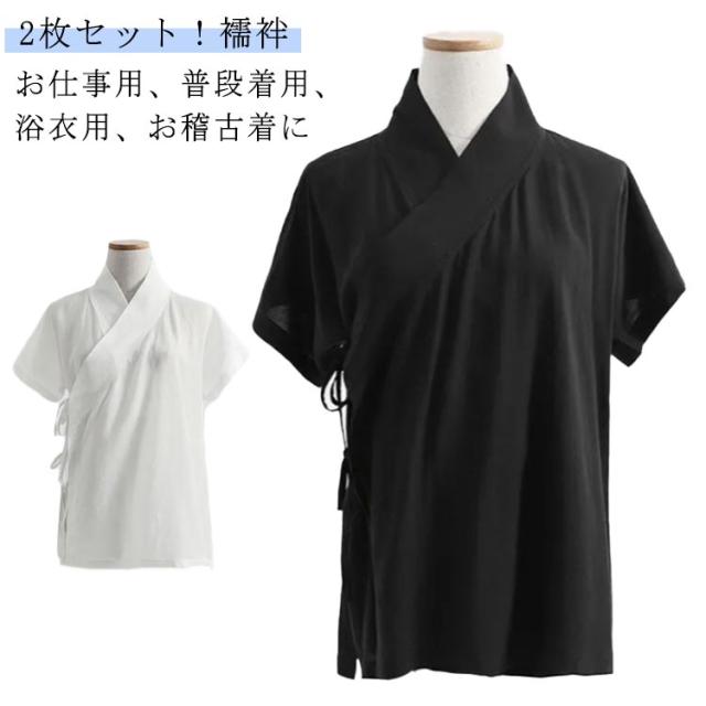 2枚セット!襦袢 Tシャツ 半襦袢 着物 簡単 衿付き きもの レディース インナー 半袖 簡単 初心者 一体型 和装 浴衣 着物 下着 肌着 速乾 快適 女性 着物下 白 黒 ホワイト ブラック 送料無料