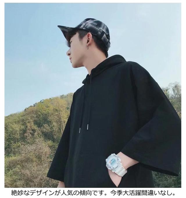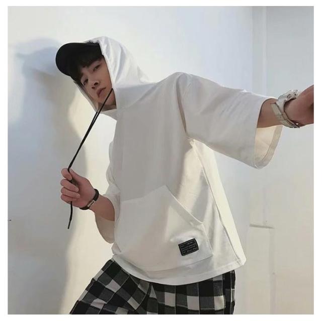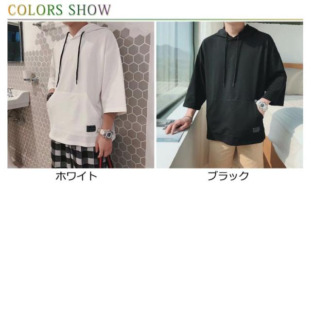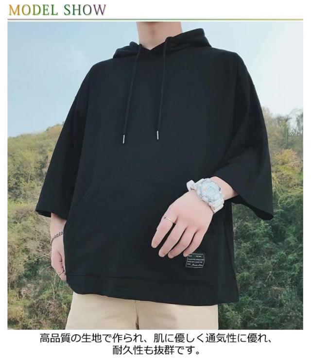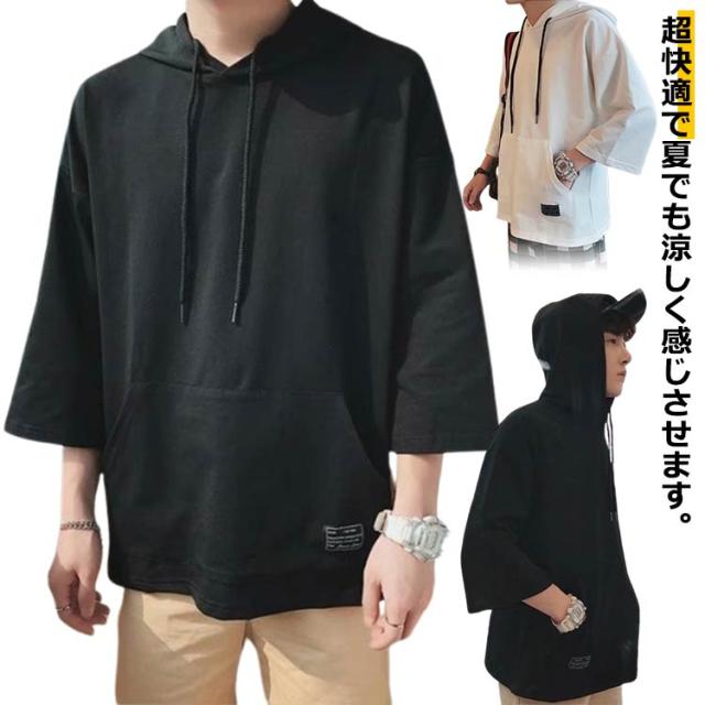 パーカー メンズ 半袖パーカー 半袖 薄手パーカー フード付きtシャツ プルオーバーパーカー 薄手 春服 夏服 冷感 トップス 大きいサイズ 無地 シンプル 夏 韓国 白 黒 ホワイト ブラック 送料無料