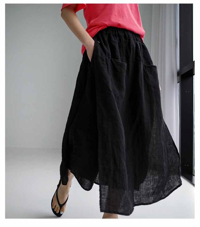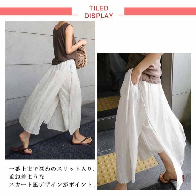 スカート付きパンツ 綿麻 キュロット ワイドパンツ スカート風 ガウチョパンツ クロップド丈 重ね着風 カジュアルパンツ ゆったり 体型カバー 薄手 通気性 春 夏 秋 母の日 ブラック ホワイト