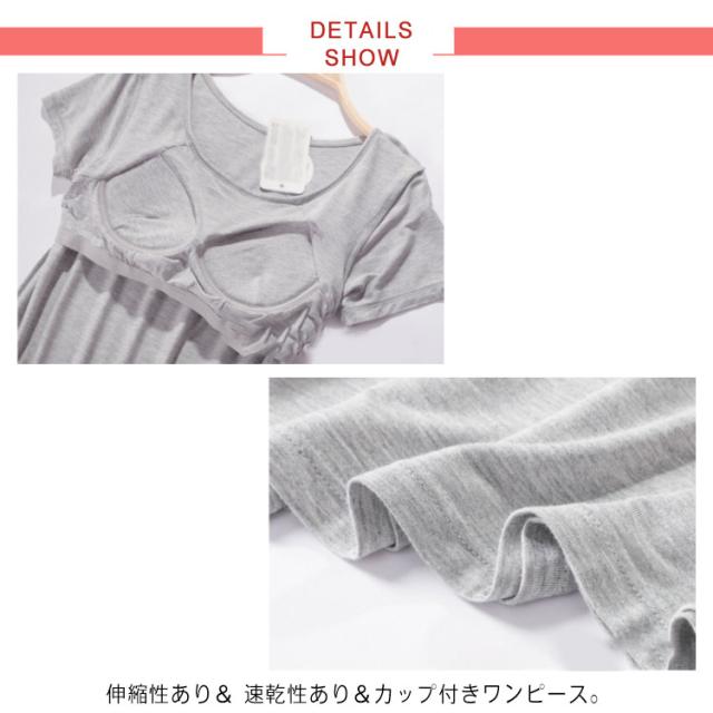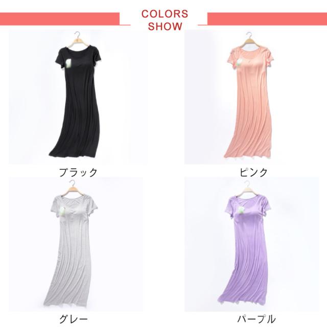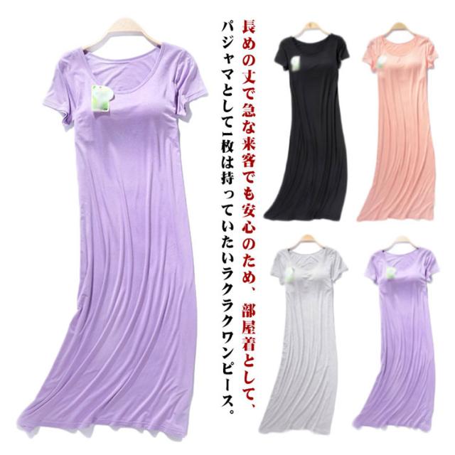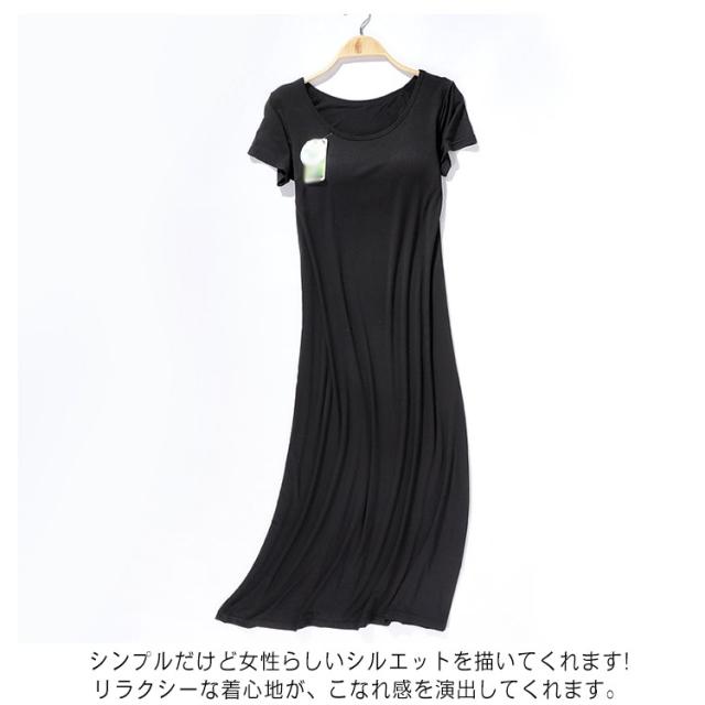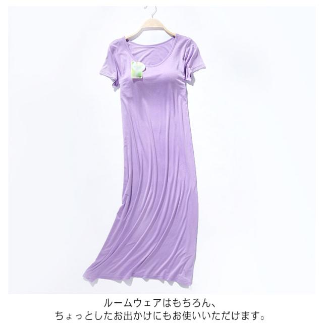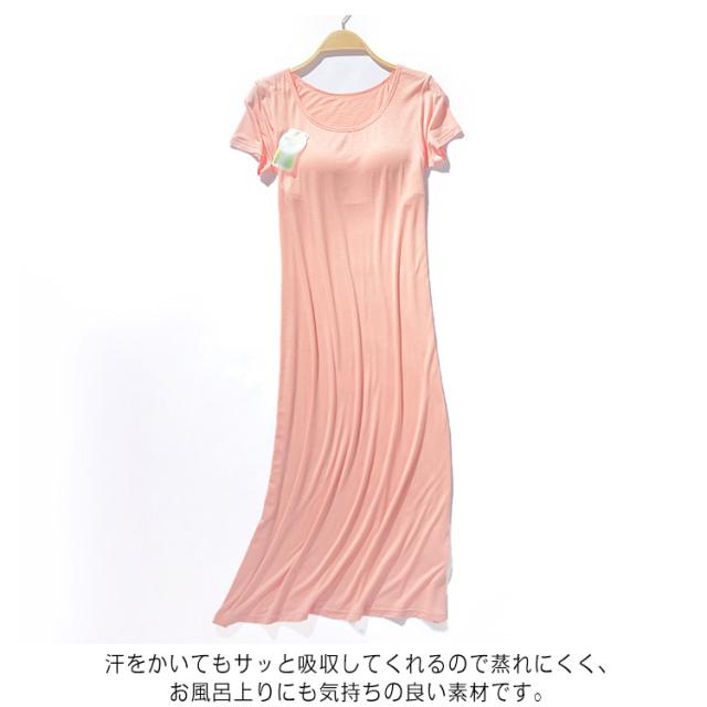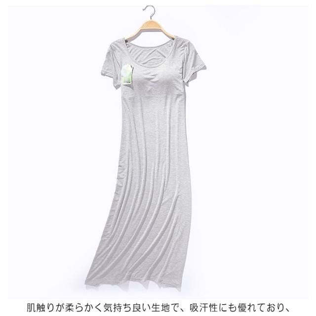 ロング ワンピース カップ付き ルームウェア パジャマ パッド入り レディース ロングTシャツ 半袖 ゆったり ワイヤーなし 夏 肌着 軽量 ゆったり 送料無料
