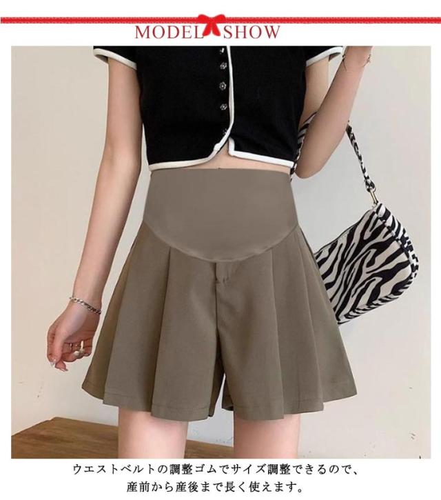マタニティ ショートパンツ タック ハーフパンツ マタニティウェア 接触冷感 ひんやり マタニティパンツ ワイド ショーパン ウエスト調節可能 産前 産後 妊婦服 短パン 無地 ゆったり 可愛い おしゃれ きれいめ カジュアル 春夏 夏 送料無料