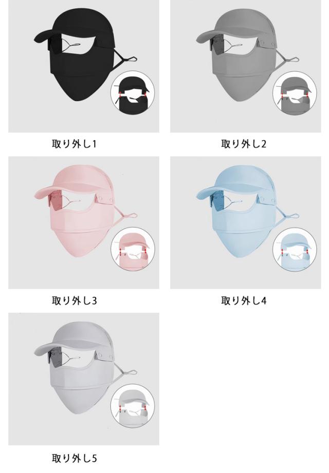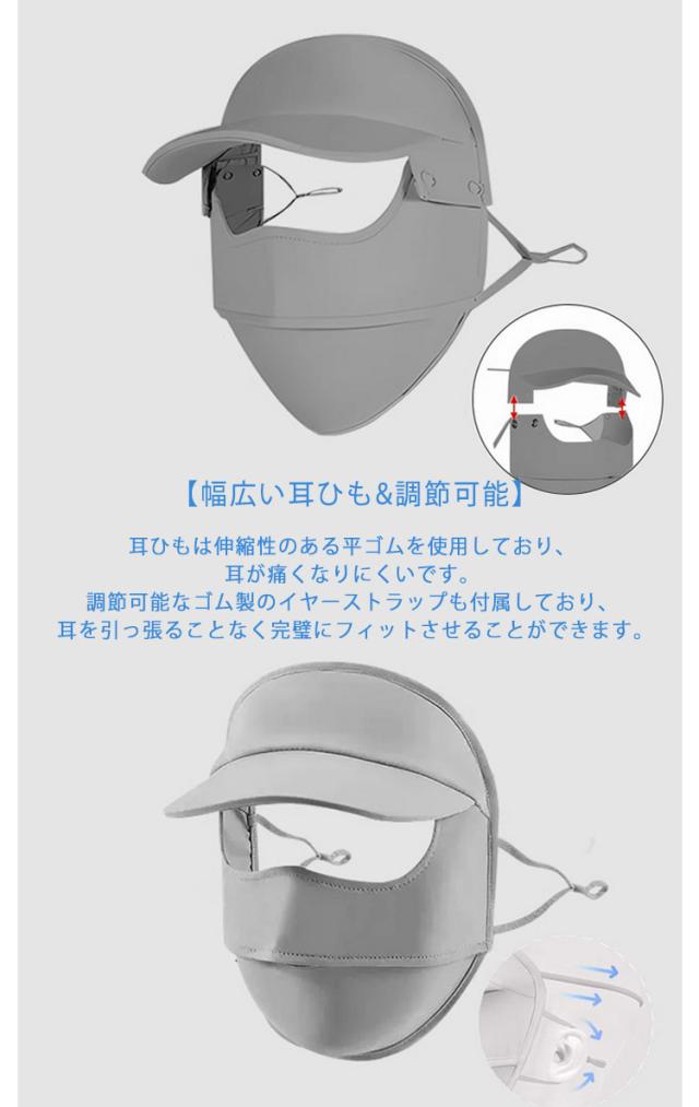 | 取り外し&一体型2タイプ! 【冷感&涼しい素材】 接触冷感素材で作られており、肌に触れる感触が柔らかくさらさらしています。着用するとひんやりとした感触があり、圧迫感もほとんど感じません! 【通気速乾性・息苦しくない】 開口デザインによって息がスムーズに排出されます。 優れた通気性により、汗が残らずに素早く乾く素材です。 熱の解散が早いため、ひんやり感がすぐに回復します。 伸縮性にも優れた素材を使用しており、男女関わらず、使えるユニバーサルデザインです。 人間工学に基づく設計と顔はぴったりフィットし、すべての顔型に適しており、使用後1秒で小顔になる効果があり、スタイリッシュで美しい。 【全面保護・紫外線対策】 頭も目も顔もしっかり保護できるので、紫外線から肌を守ることができます。 【幅広い耳ひも&調節可能】 耳ひもは伸縮性のある平ゴムを使用しており、耳が痛くなりにくいです。 調節可能なゴム製のイヤーストラップも付属しており、耳を引っ張ることなく完璧にフィットさせることができます。 5つのおしゃれなカラーバリエーションで、コーディネートに合わせて色を選べるのは嬉しいポイント。 【幅広いシーンに適応】 アウトドア、登山、ゴルフ、釣り、サイクリング、旅行、スポーツ観戦、キャンプ、日常生活、通勤、通学、園芸、野外作業、屋外作業などで紫外線や日焼け対策に広く使用されています。 | |