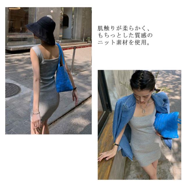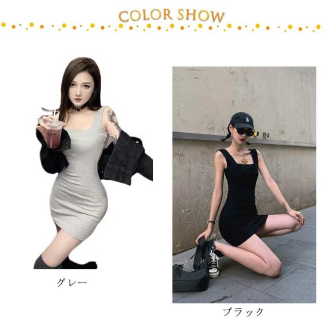 スクエアネック ミニ丈 キャミワンピ ノースリーブ ミニワンピ タンクトップワンピ 【送料無料】ミニワンピース ストレンチ 韓国 【送料無料】ミニワンピース 大人可愛い ニットワンピース タイト セクシー シンプル 黒 無地