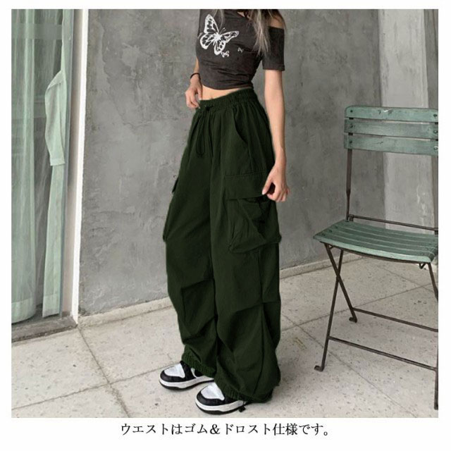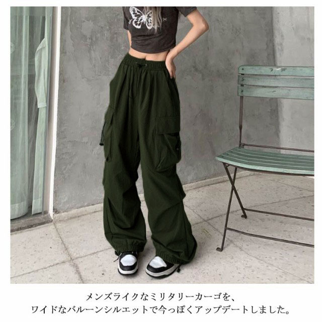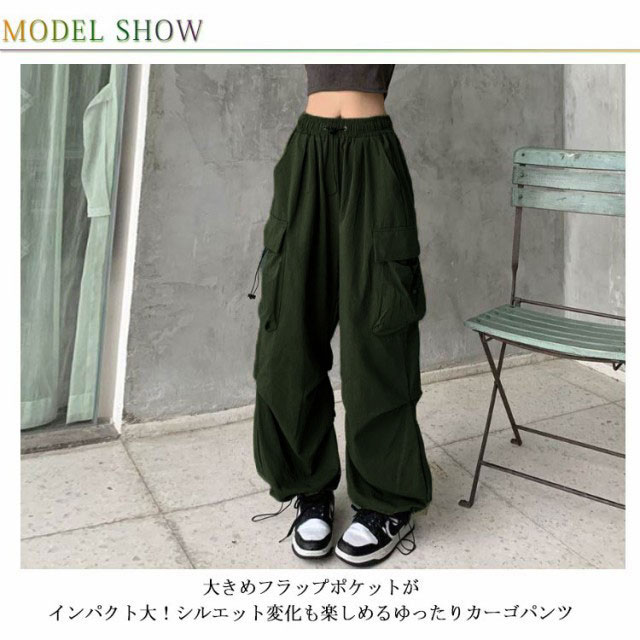 | 大きめフラップポケットがインパクト大!シルエット変化も楽しめるゆったりカーゴパンツ メンズライクなミリタリーカーゴを、ワイドなバルーンシルエットで今っぽくアップデートしました。 ウエストはゴム&ドロスト仕様です。 裾も絞れるドロスト仕様になっていますが、結びをしないでもストレートシルエットの今年っぽいラインです。 ナイロンが入っているので程よくハリがありつつも、ルーズに着ていただけます。 ダンスパンツとしても◎普段着のカジュアルパンツとしても使えます。 | |