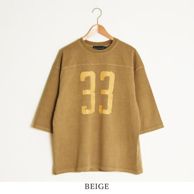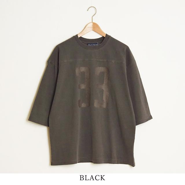 ナンバープリントと胸元の切り替えがアクセントになったデザインで、どの色もコーディネートしやすいのが魅力です。オーバーサイズのシルエットは、現代的なファッションセンスを反映しており、どんな体型の方にも似合うフィット感を提供します。