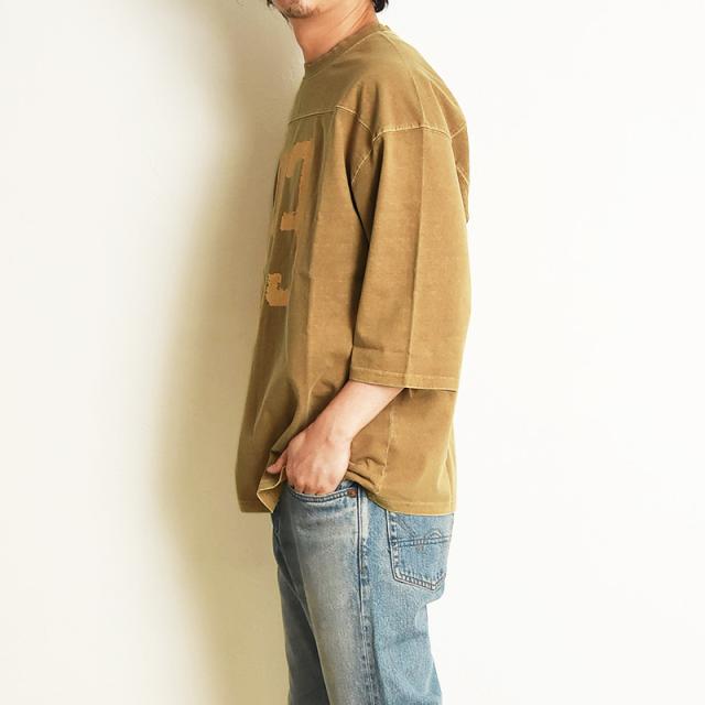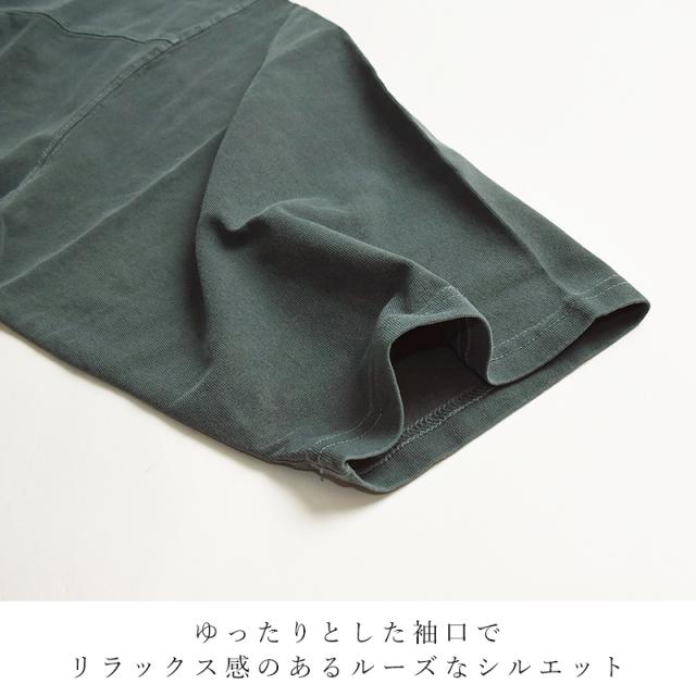 っヴィンテージライクな半袖クルーネックTシャツです。このTシャツは、柔らかく快適な綿100%素材を使用しており、日常の着用はもちろん、アクティブなシーンにも最適です。ザラッとした質感にピグメントと洗い加工、程よいダメージ加工でヴィンテージのような経年劣化をイメージ。