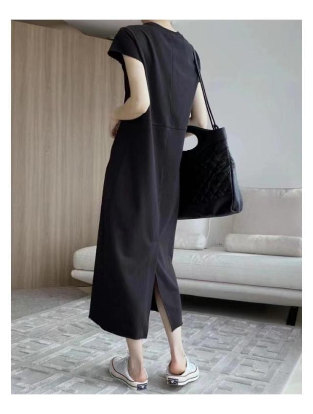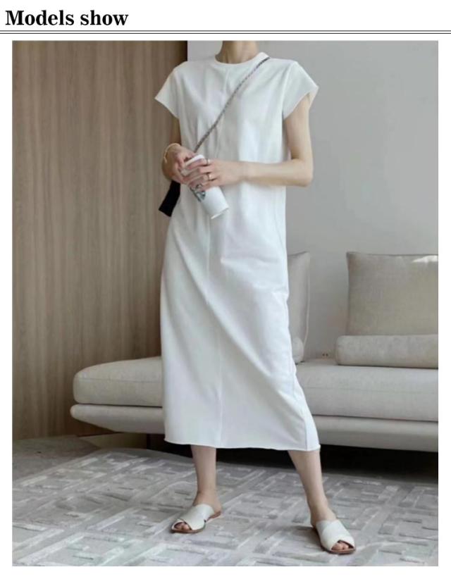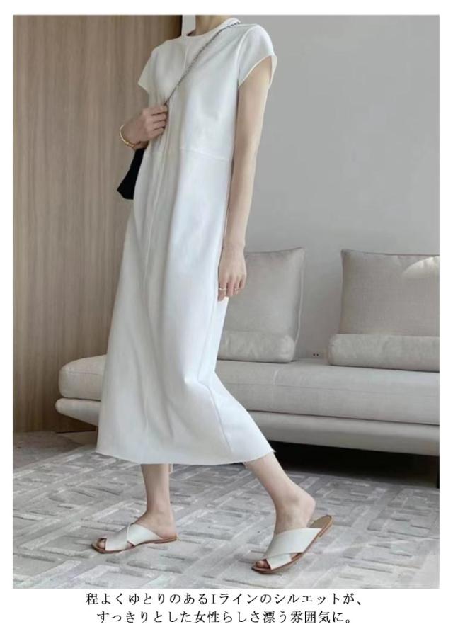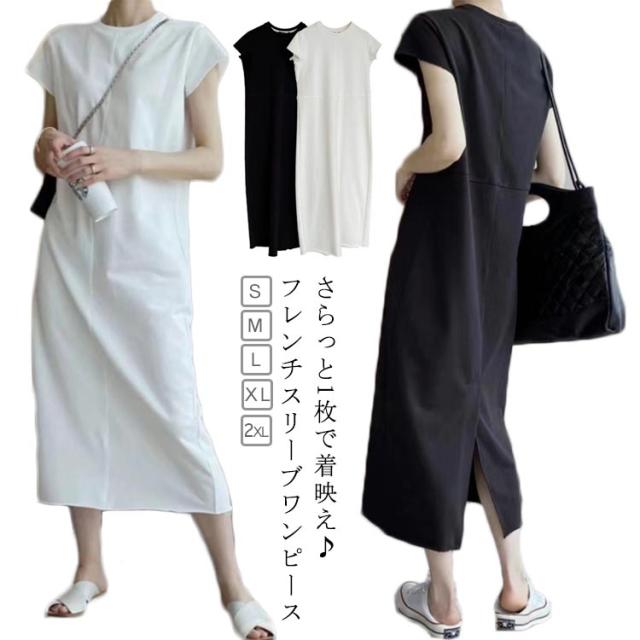 ロングワンピース Tシャツ ワンピース レディース フレンチスリーブ クルーネック 丸首 バック スリット ロング丈 マキシ丈 カジュアル 通勤 オフィス カットソー 夏 涼しい
