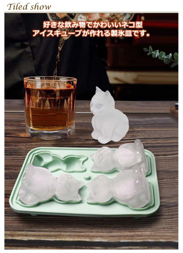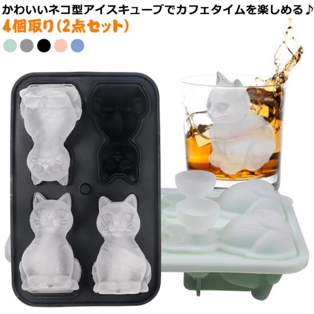 製氷皿 製氷器 ネコ型 シリコン 製氷 アイストレー製氷皿 2点セット 4個取り 蓋付き 取出し簡単 アイス 氷 柔らかい 製氷グッズ 高耐久性 漏れ防止 かわいい ジュース アイスコーヒー ビール 梅酒 ウィスキー 自宅用 職場用 クラブ用 レストラン用 バー用品