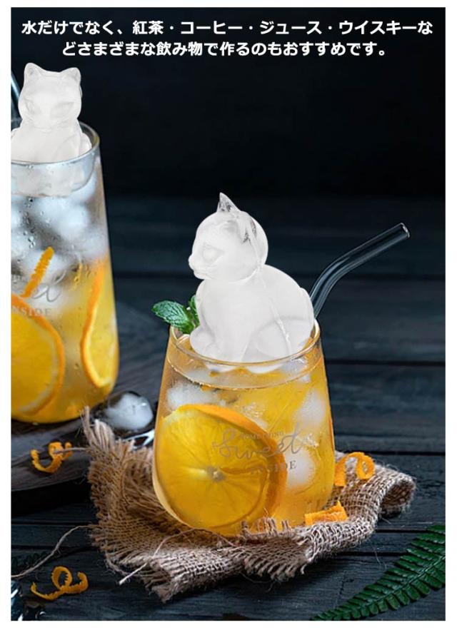 | かわいいネコ型アイスキューブでカフェタイムを楽しめる♪4個取り(2点セット) 好きな飲み物でかわいいネコ型アイスキューブが作れる製氷皿です。 シリコン素材でできているので、できあがった氷を取り出すのが簡単なのもうれしいポイント。 水だけでなく、紅茶・コーヒー・ジュース・ウイスキーなどさまざまな飲み物で作るのもおすすめです。 フタつきなので冷凍中のにおいをブロックし、ご家庭からバーや飲食店まで幅広い場所で使えます。 | |