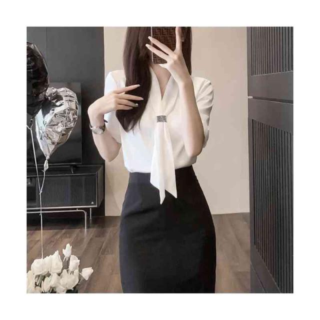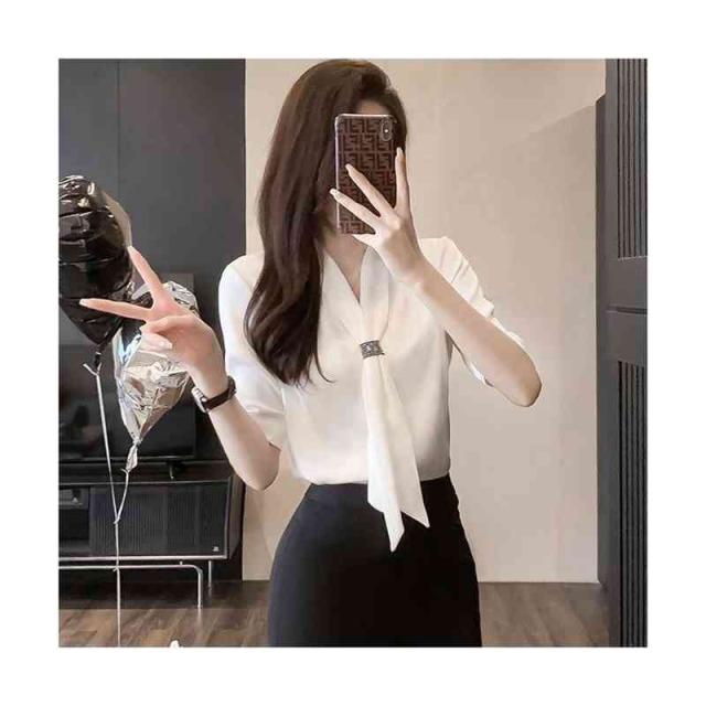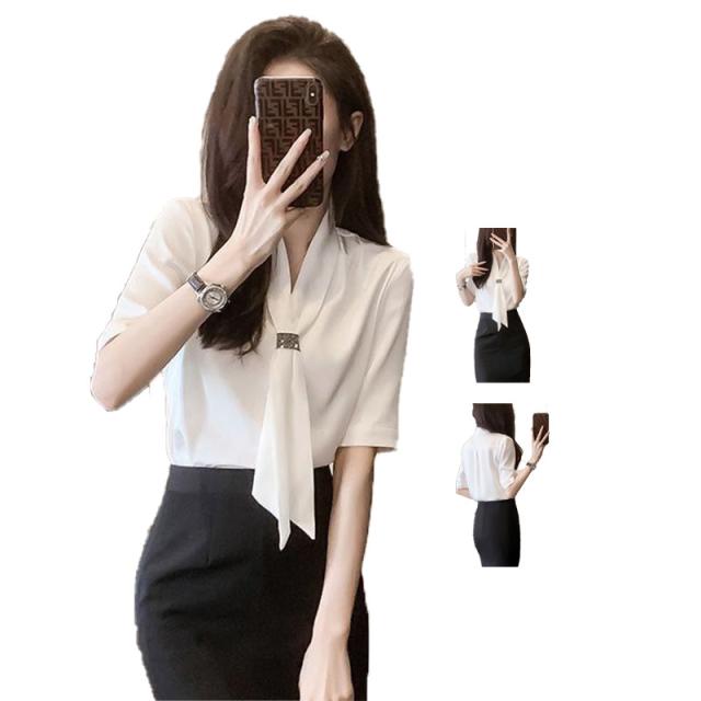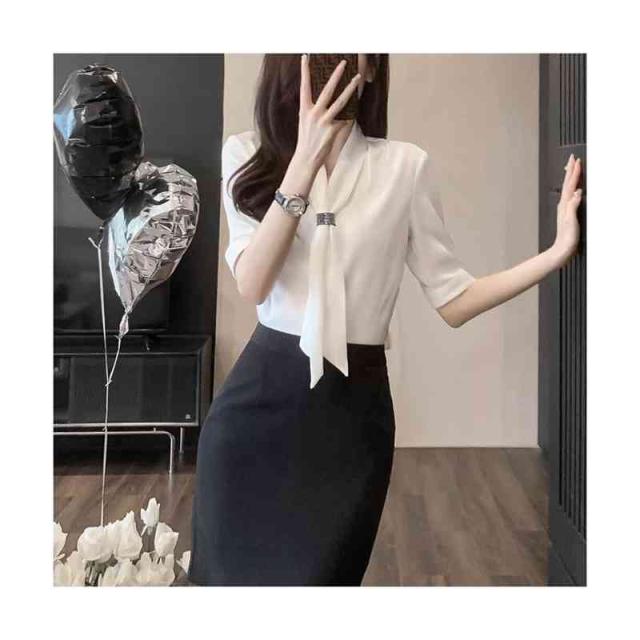 レディース 春夏 フォーマルシャツ スーツシャツ 半袖シャツ ワイシャツ リボン シャツブラウス 半袖 スーツインナー フォーマル おしゃれ 可愛い 夏シャツ インナーウエア 無地 シンプル カジュアル 大人 普段着 送料無料 フェミニン