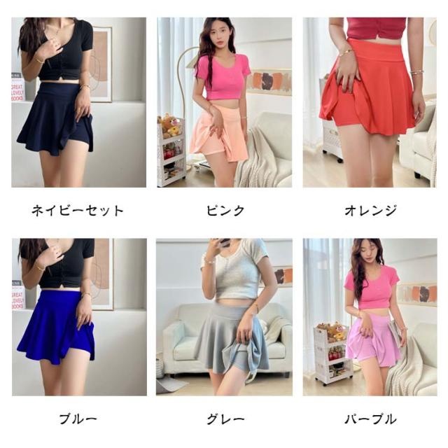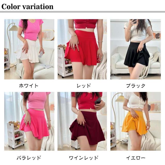 フレアスカート ミニ インナーパンツ付きスカート フレアミニスカート スカート ミニスカート フレア スカート インナーパンツスカート レディース 美脚 可愛い カジュアル 無地 シンプル 大きいサイズ ウエストゴム 涼しい 春 夏 送料無料