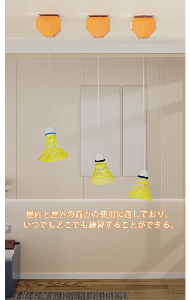 | リモコンで調節可能なコードの長さを備えたリバウンドトレーナーでトレーニングを強化する。 気軽にバドミントンを楽しめる。 シャトル3個付き。遊び始めは、羽根(シャトル)があっちこっちに飛んでいくもの★なくしても、壊しても安心★ 屋内と屋外の両方の使用に適しており、いつでもどこでも練習することができる。 | |