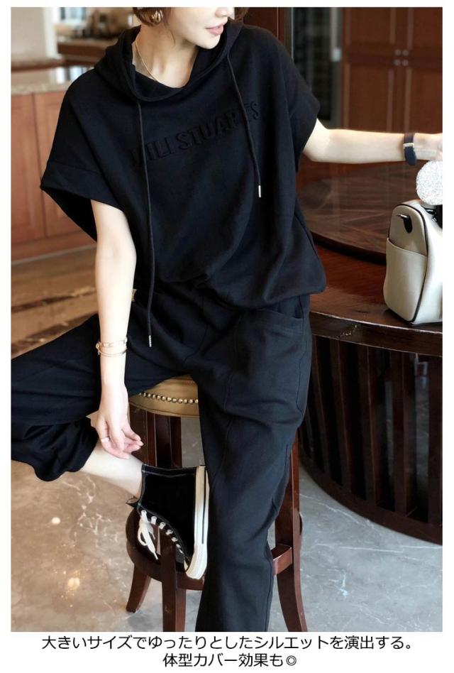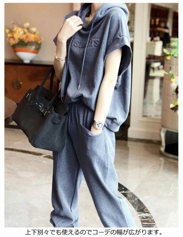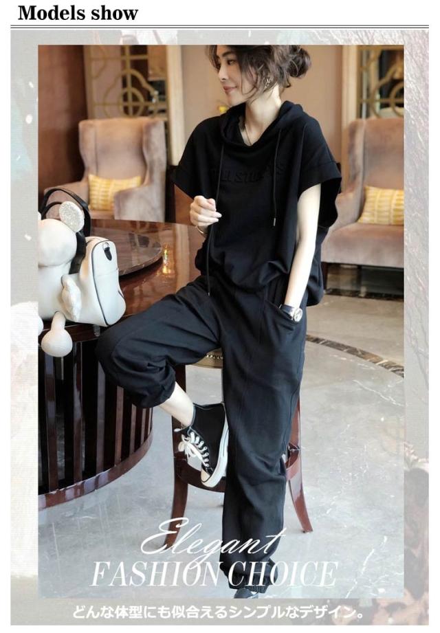 カジュアルセットアップ レディース スウェット 2点 上下セット 半袖 おしゃれ 夏 ジャージ フード付き スウェットパンツ 7分丈パンツ 無地 ゆったり 着痩せ 体型カバー 春秋 大きいサイズ シンプル 部屋着 運動着 スポーツ お出かけ ギフト ダンス衣装 送料無料
