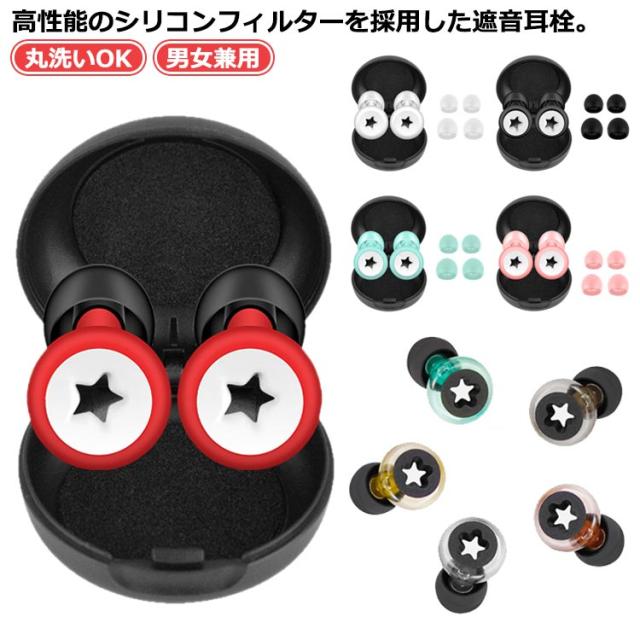 かわいい星柄 耳栓 睡眠用 耳栓 遮音 グッズ イヤープラグ 安眠 快眠 防音 ノイズキャンセリング 機内用 男女兼用 水洗い 丸洗いOK リモートワーク 騒音対策 繰り返し使える ノイズ低減 耳せん シリコン ケース付き 勉強