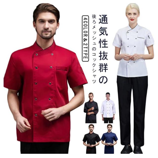 コックコート コック服 コックウェア コックシャツ トップス 調理用 ユニフォーム 厨房用制服 長袖 飲食店 おしゃれ パン屋 ケーキ屋 カフェ メッシュ 通気性 快適 吸汗速乾 メンズ レディース 男性 女性 男女兼用 長袖 半袖 2タイプ 大きいサイズ M-4XL 春 夏 秋 冬