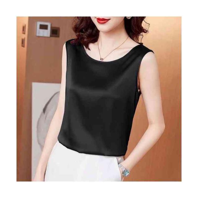 タンクトップ トップス ノースリーブ ブラウス 光沢感 スーツインナー インナータンクトップ レディース おしゃれブラウス 大きいサイズ ショート丈 フォーマルブラウス 重ね着 肌着 透けない ブラ紐隠し 薄手 ゆったり 大人 無地 オフィス 春夏 送料無料