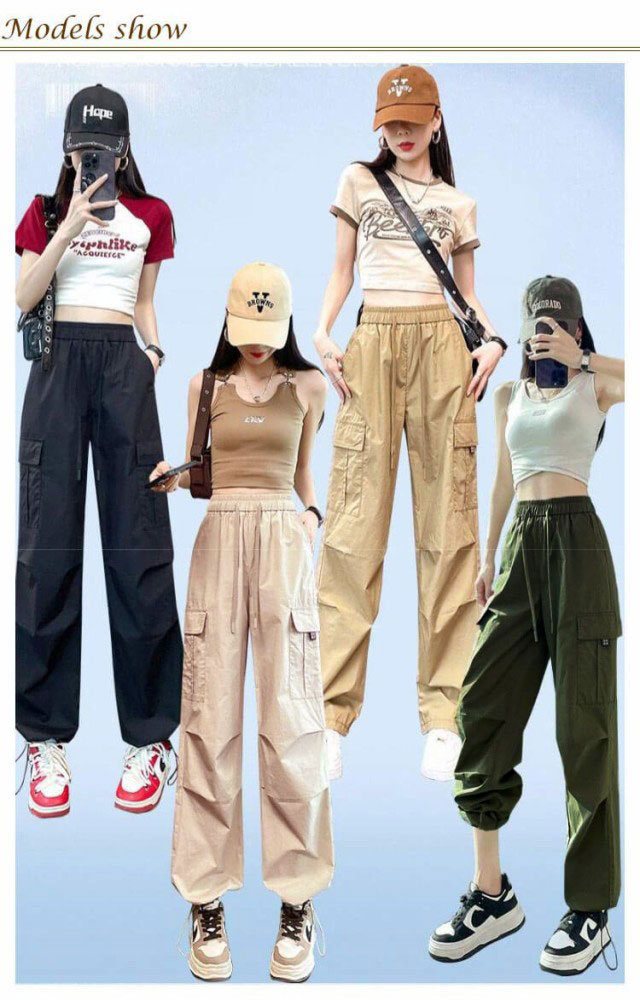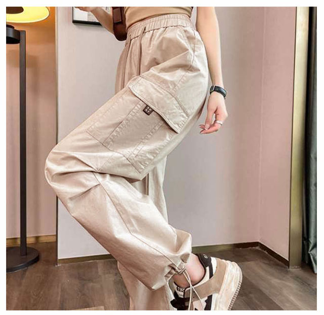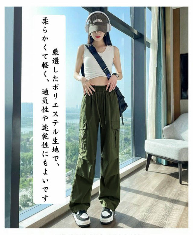 カーゴパンツ レディース ロングパンツ ワイド 薄手 ボトムス 春 夏 秋 カジュアル パンツ ズボン ゆったり 無地 ウエストゴム ダンス用 動きやすい 女性用 シンプル かっこいい 韓国ファッション