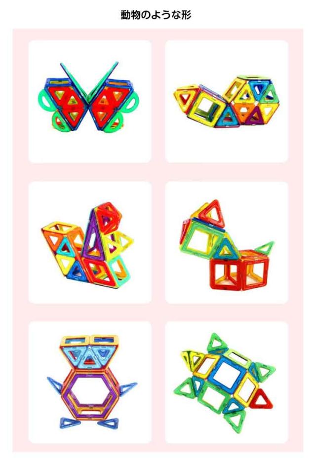 | 148枚セット 想像力と創造力を育てるマグネット 長時間経っても、磁力が弱くなりなく、有害物も発散しない知育おもちゃ マグネット 重心を持ち上げると瞬時に3次元の立体へ変形 一枚一枚に積み重ねることをおすすめ致します | |