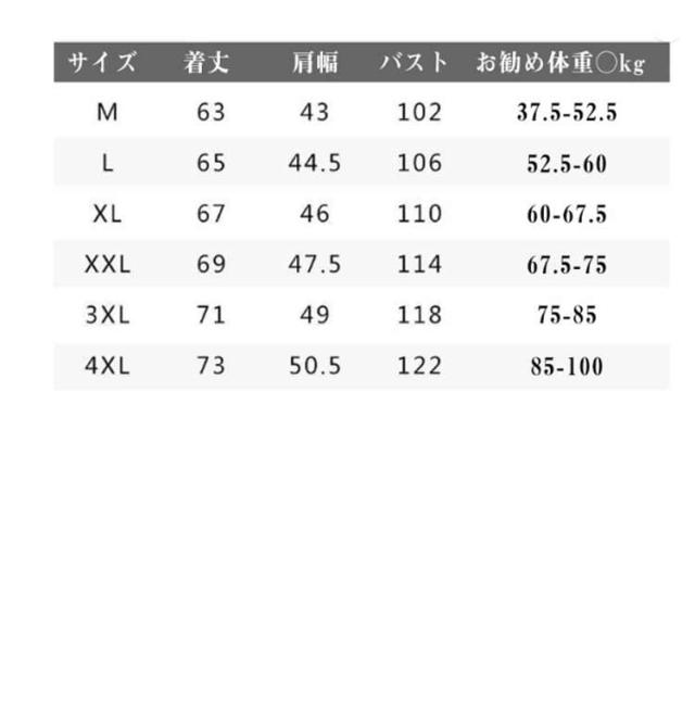 | サイズ | M L XL 2XL 3XL 4XL |