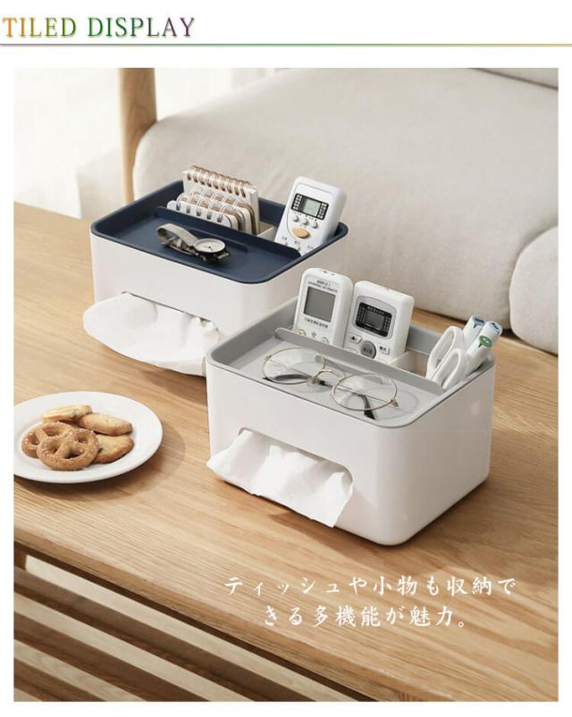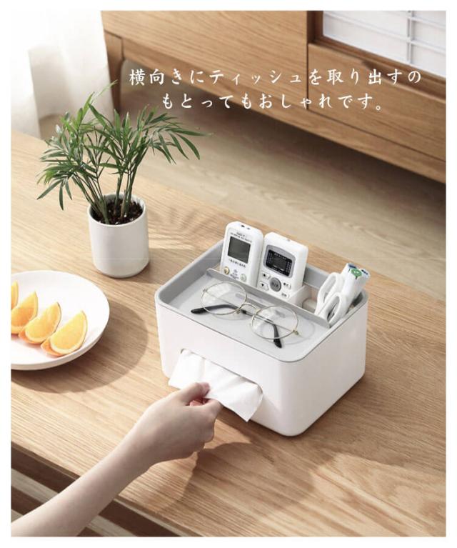 ティッシュケース 多機能 グレー ティッシュボックス 小物入れ リモコンラック シンプル 北欧風 卓上収納 大容量 リビング 寝室 インテリア雑貨 ボックスティッシュケース