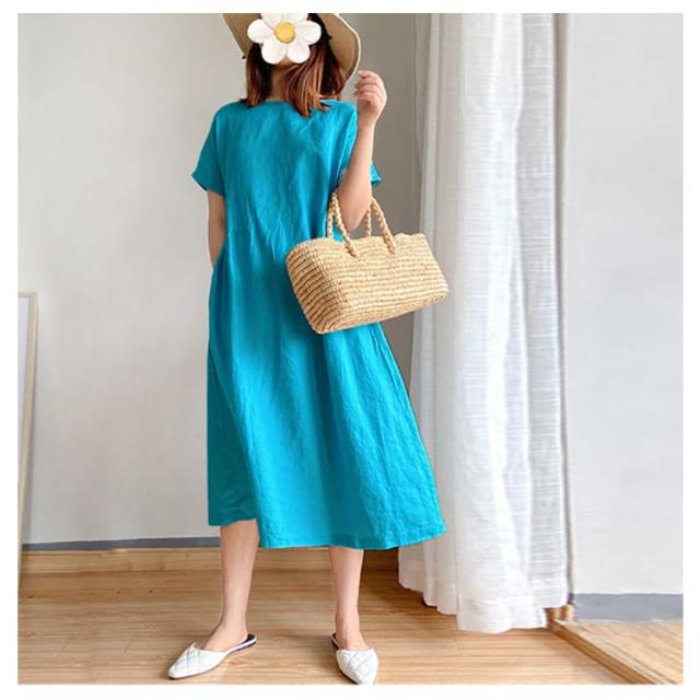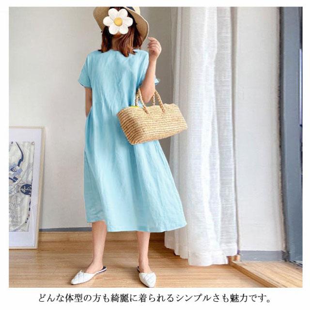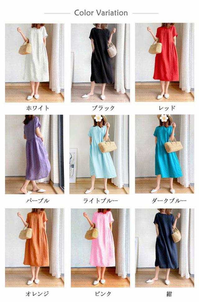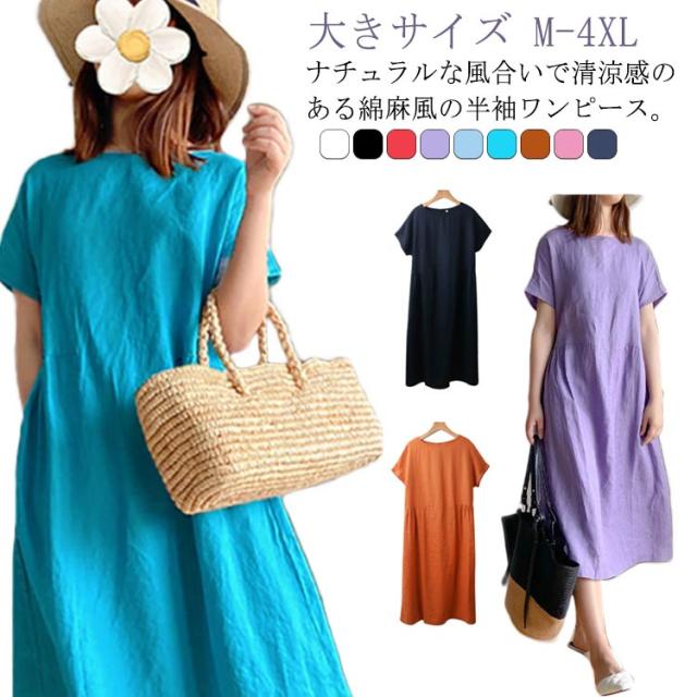 全9色!ゆったり ワンピース ロング丈 半袖ワンピース 春夏 大きサイズ 体型カバー ロングワンピース きれいめ 無地 体型カバー 大人 30代 40代 50代