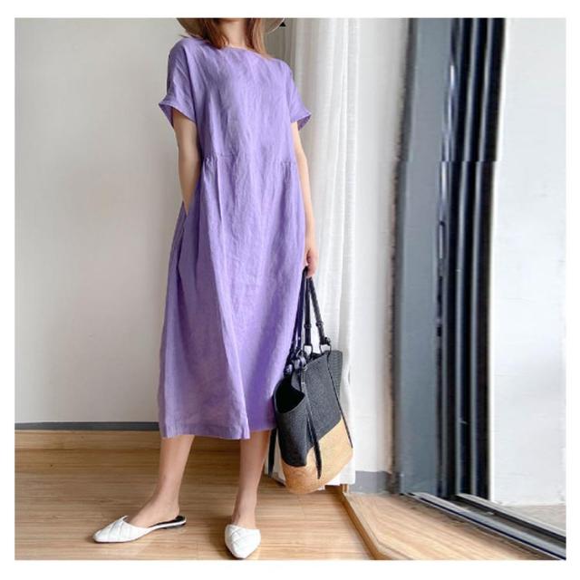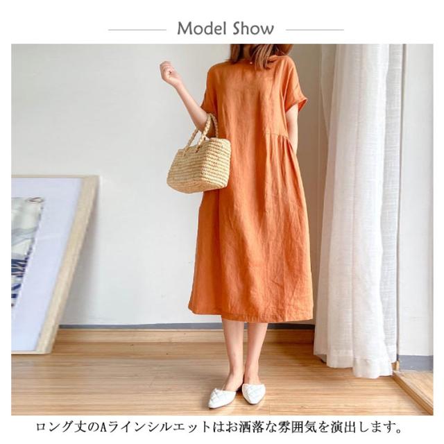 | 全9色!ナチュラルな風合いで清涼感のある綿麻風の半袖ワンピース。 ロング丈のAラインシルエットはお洒落な雰囲気を演出します。 柔らかな肌触りでストレスフリーな気持ちよい着心地を実現します。 ゆったりとしたシルエットでさりげなく体型をカバーしてくれます。 どんな体型の方も綺麗に着られるシンプルさも魅力です。 | |