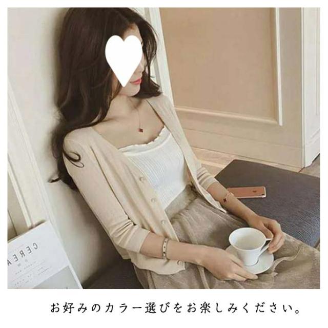 | 薄手の素材なのでUV対策や冷房対策としてもお使い頂けます。 無地でシンプルなデザインがデイリー使いしやすいカーディガンです。 丁度良い丈感がサラッと羽織りやすいです。 お好みのカラー選びをお楽しみください。 | |