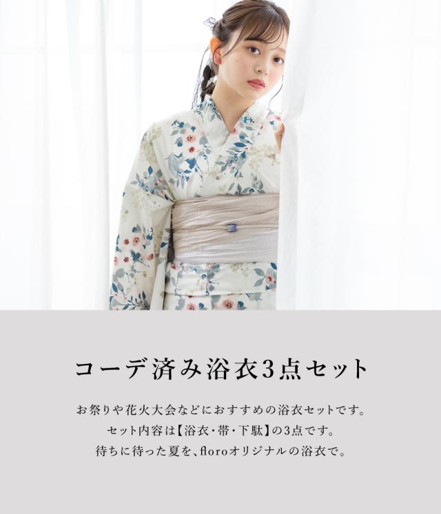 こちらの商品は、浴衣・帯・下駄の3点セットです。セット内容の一部変更や、それに伴う値引きは承っておりません。