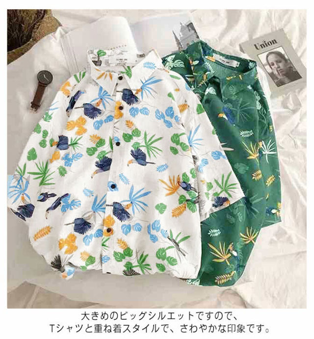 | 絶妙な仕立てと縫製、しっかりとした生地で丈夫なのです。 繊細かつ鮮やかなプリント柄模様のデザインが上質なため、派手過ぎず上品に着こなせます。 大きめのビッグシルエットですので、Tシャツと重ね着スタイルで、さわやかな印象です。 羽織としても日焼け止めできて、冷房の中に保温もできて、簡単におしゃれを楽しめる便利なメンズシャツです! | |