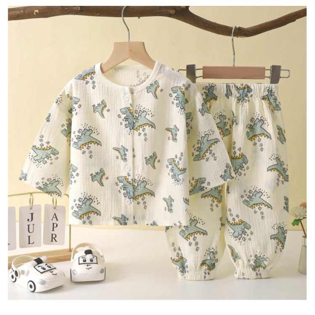 キッズ パジャマ 夏 前開き 夏用 キッズパジャマ ボタン 男の子 女の子 恐竜 子供パジャマ ボタン ガーゼパジャマ 長袖 こどもパジャマ 子どもパジャマ 上下セット 部屋着 寝巻 ルームウエア パジャマ セットアップ 2重ガーゼ 綿 コットン かわいい 春 夏 秋 80-140cm