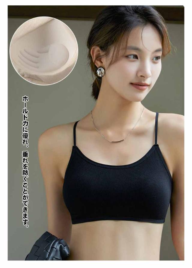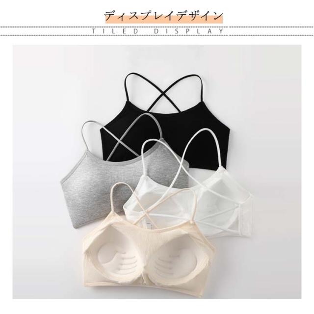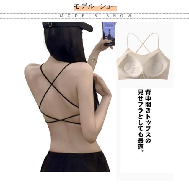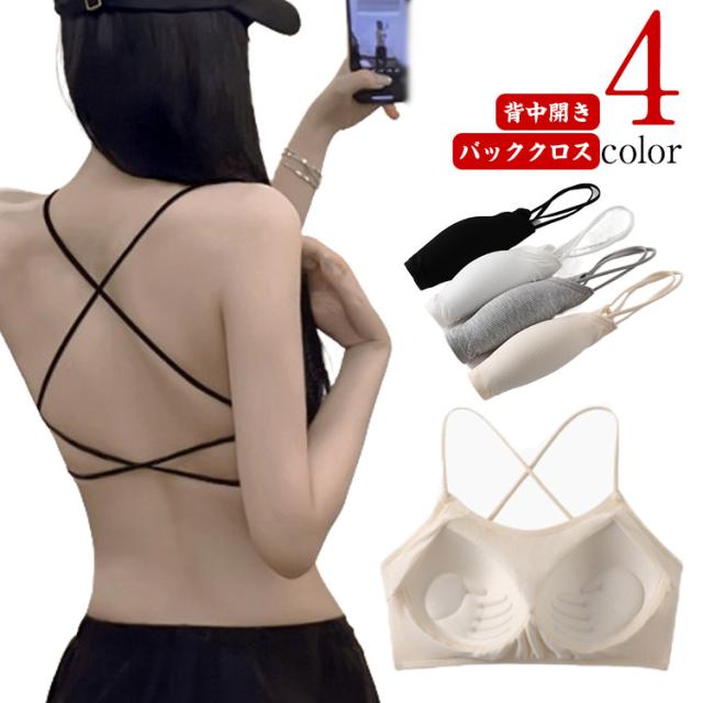 背中 あき インナー バッククロス ブラジャー 見せブラ ブラ アメリカンスリーブ レディース ブラトップ 黒 ナローストラップ ホルターネック 背中見せ 見せるインナー パット入り ノンワイヤー リブ カップ付き キャミ トップス
